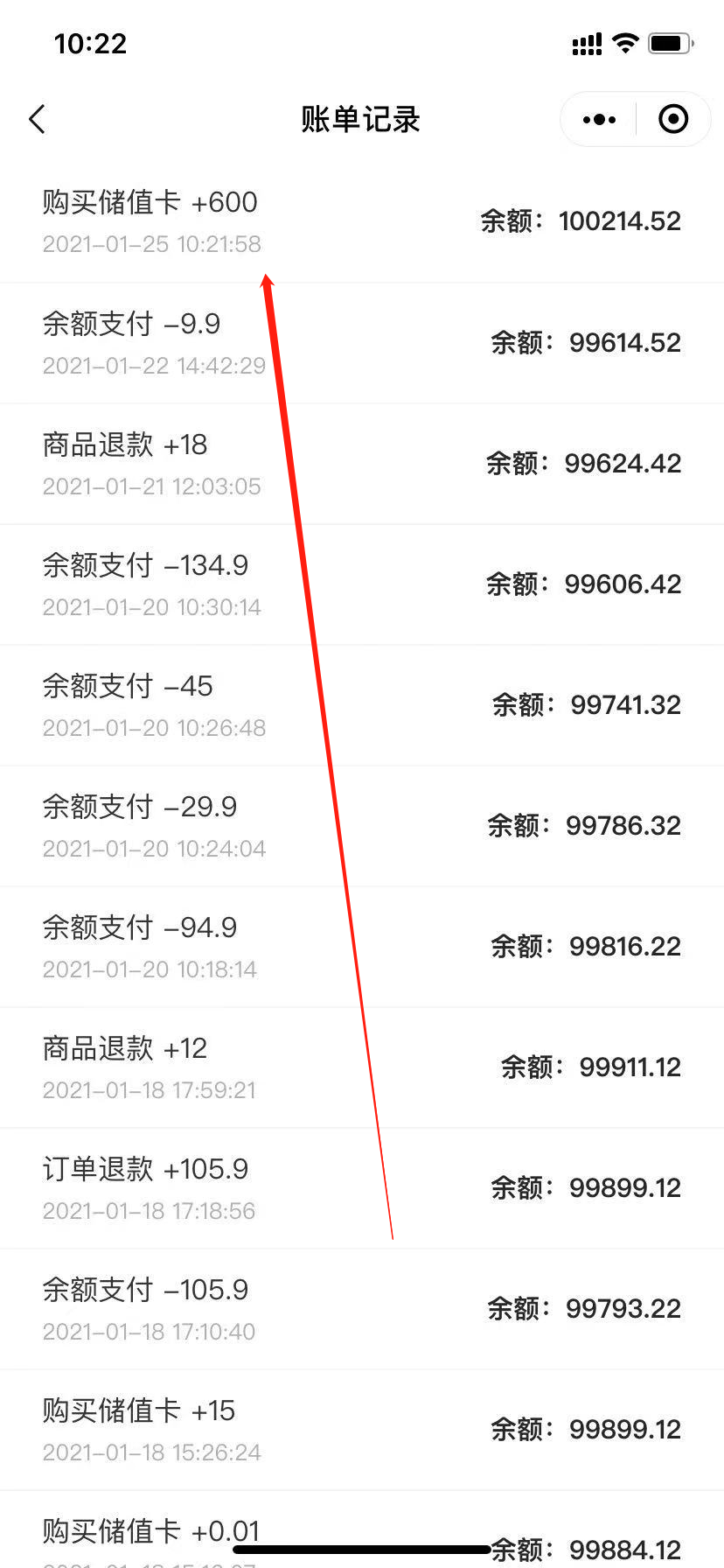 如图:兑换的500送100元卡 账单记录里查看详情