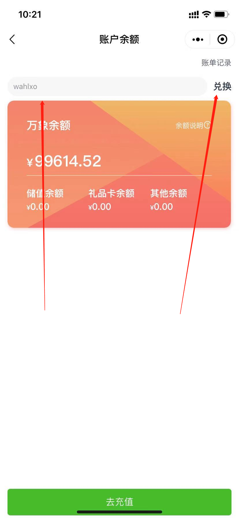 手机端我的-余额-填入兑换码