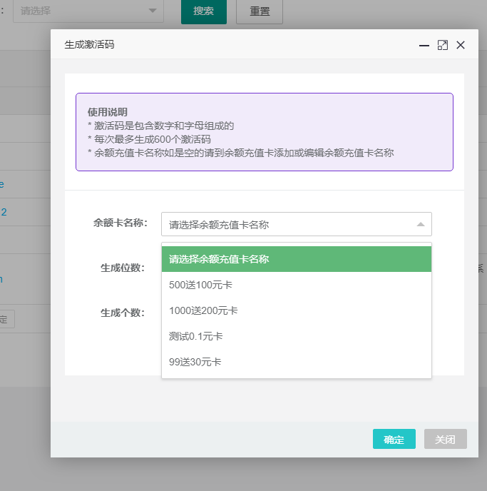 添加生成激活码可生成6-12位数 生成多个