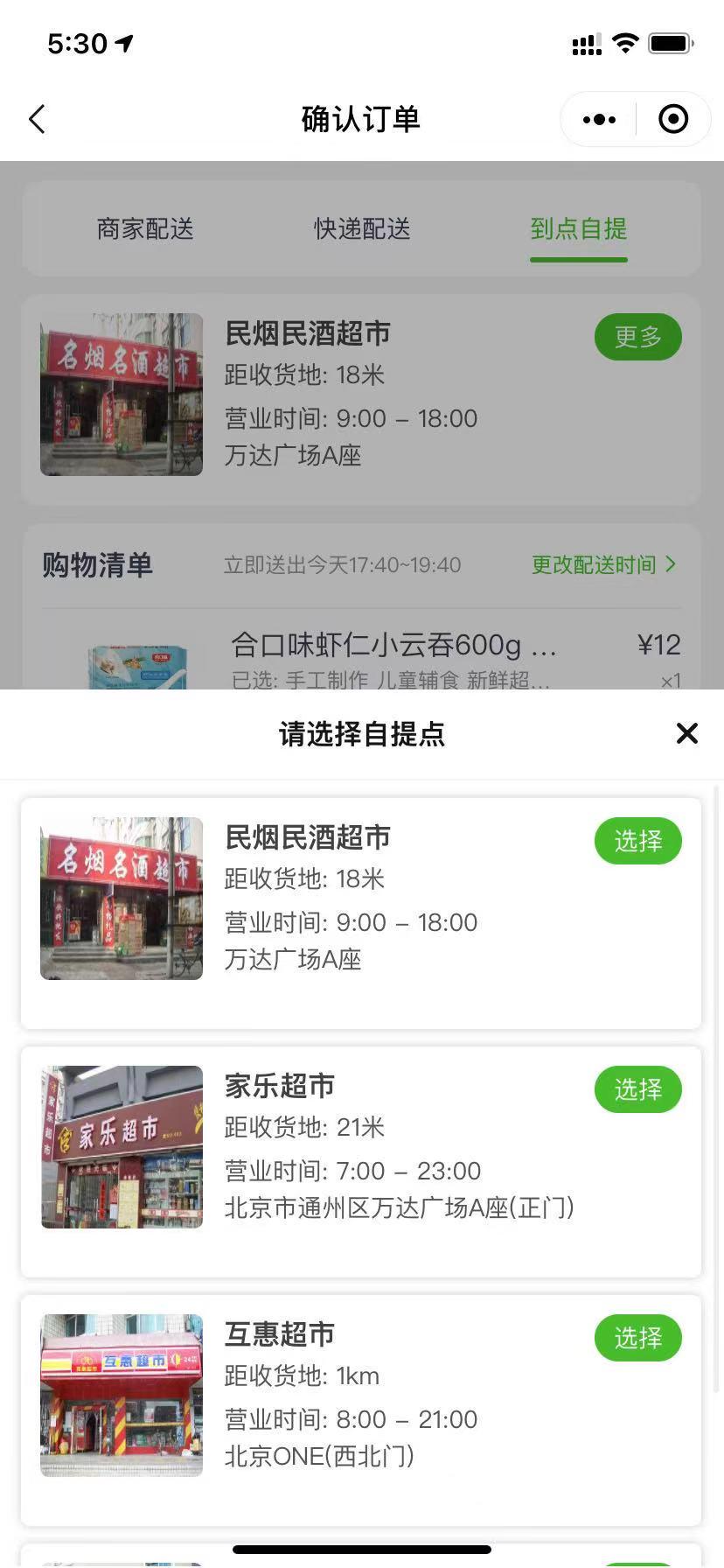 选择自提点下单、直接去店铺自提