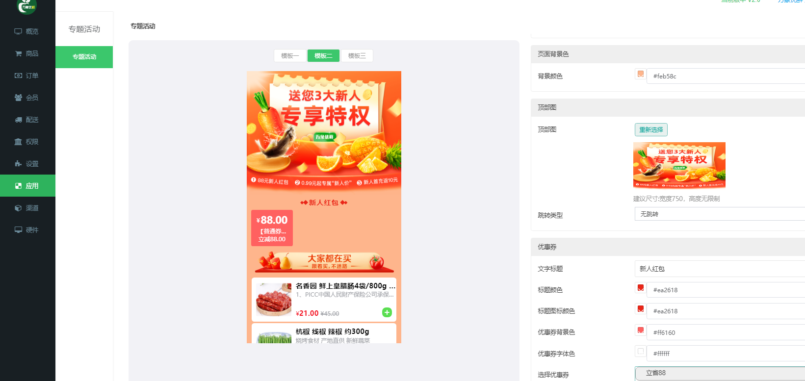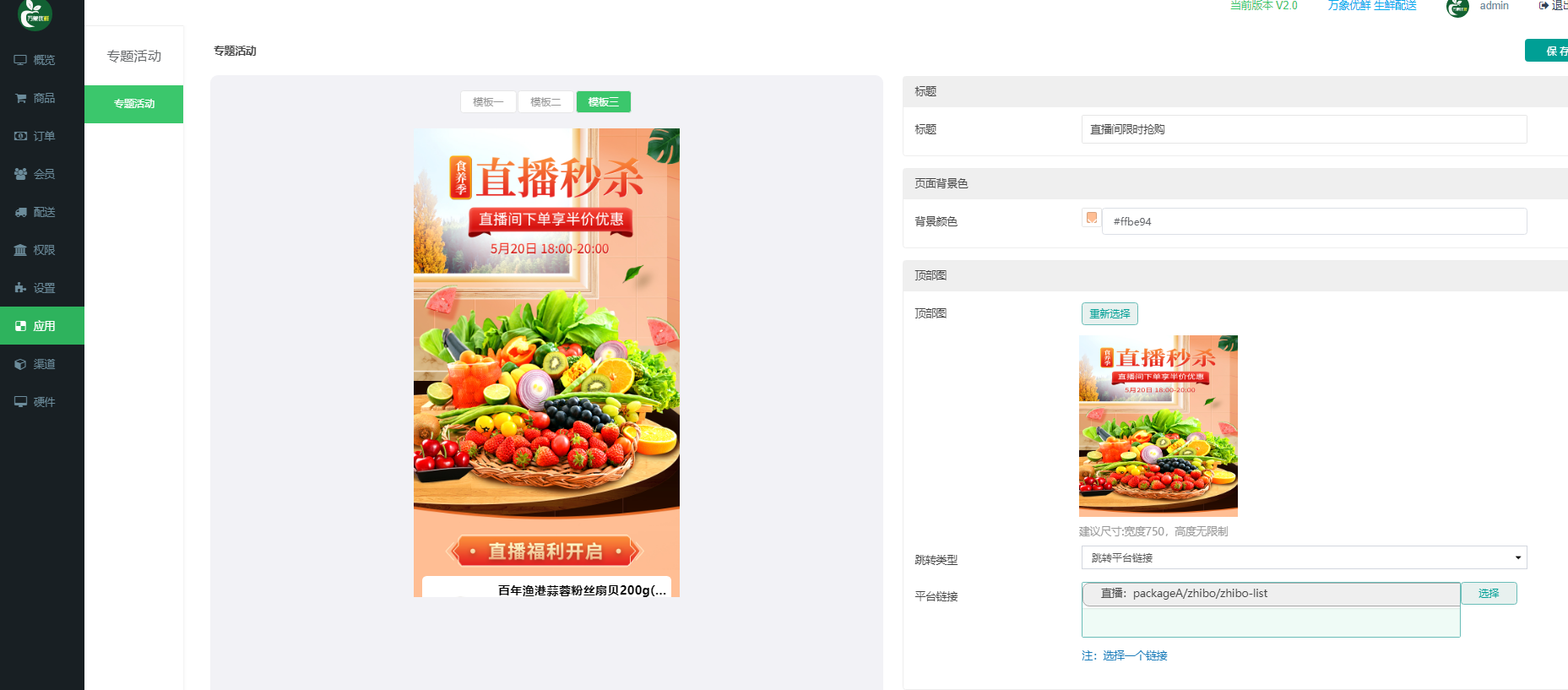 首页轮播图等位置可以添加跳转到专题活动 展现以下页面