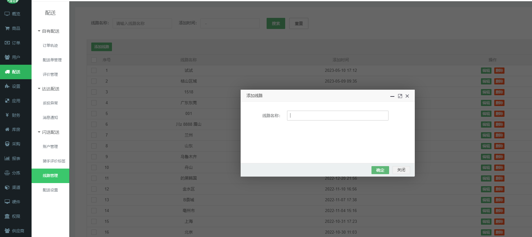 这边的机制 是提前预设线路 关联司机 司机配送的商家 会智能生成最佳配送线路 由近到远配送这里有个线路管理 可以先设置线路 然后可以绑定司机线路 也可以给用户绑定线路 司机绑定线路 订单自动推送给司机...