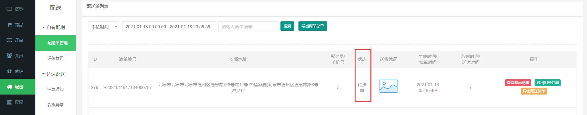 后台查看订单列表-可以后台点击确认配送