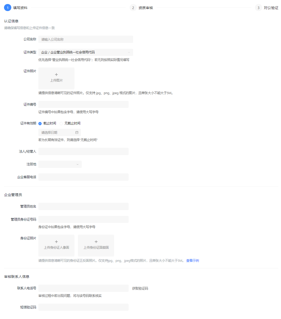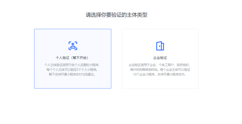 有两种选择 企业认证 个人认证(暂不开放)