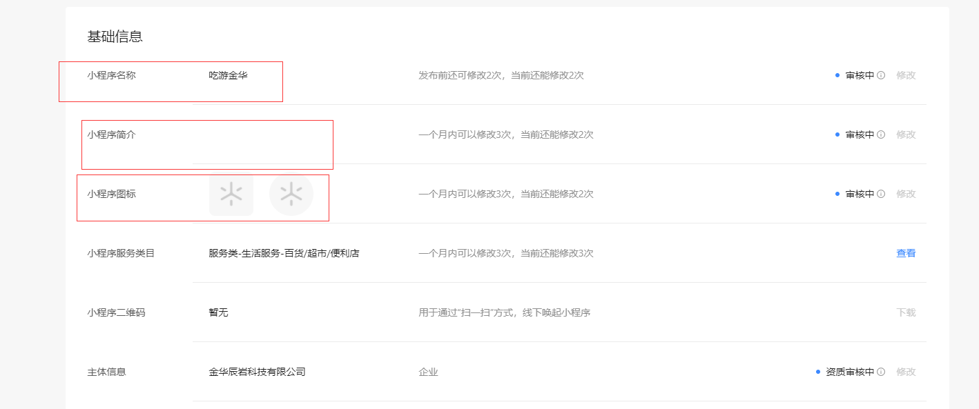 等待小程序基本信息的审核