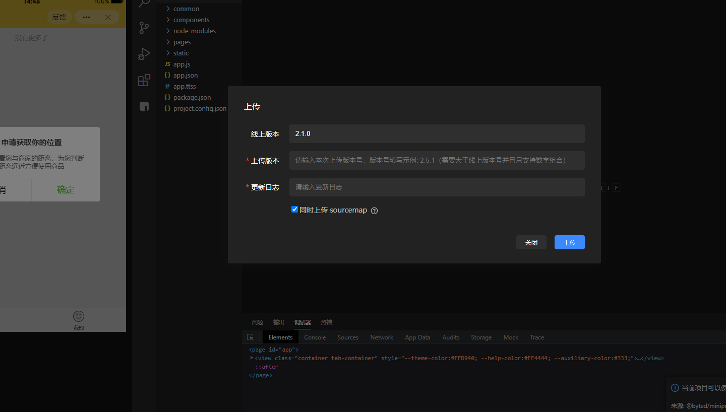 点击上传输入版本号和更新日志,版本号只要是数字就可以,版本号一定要比线上版本大才可以,例如线上版本是2.1.0,再上传的版本就要比线上版本大,2.1.1,2.1.2,2.1.3都是可以的,上传完版本会显示上传成功。