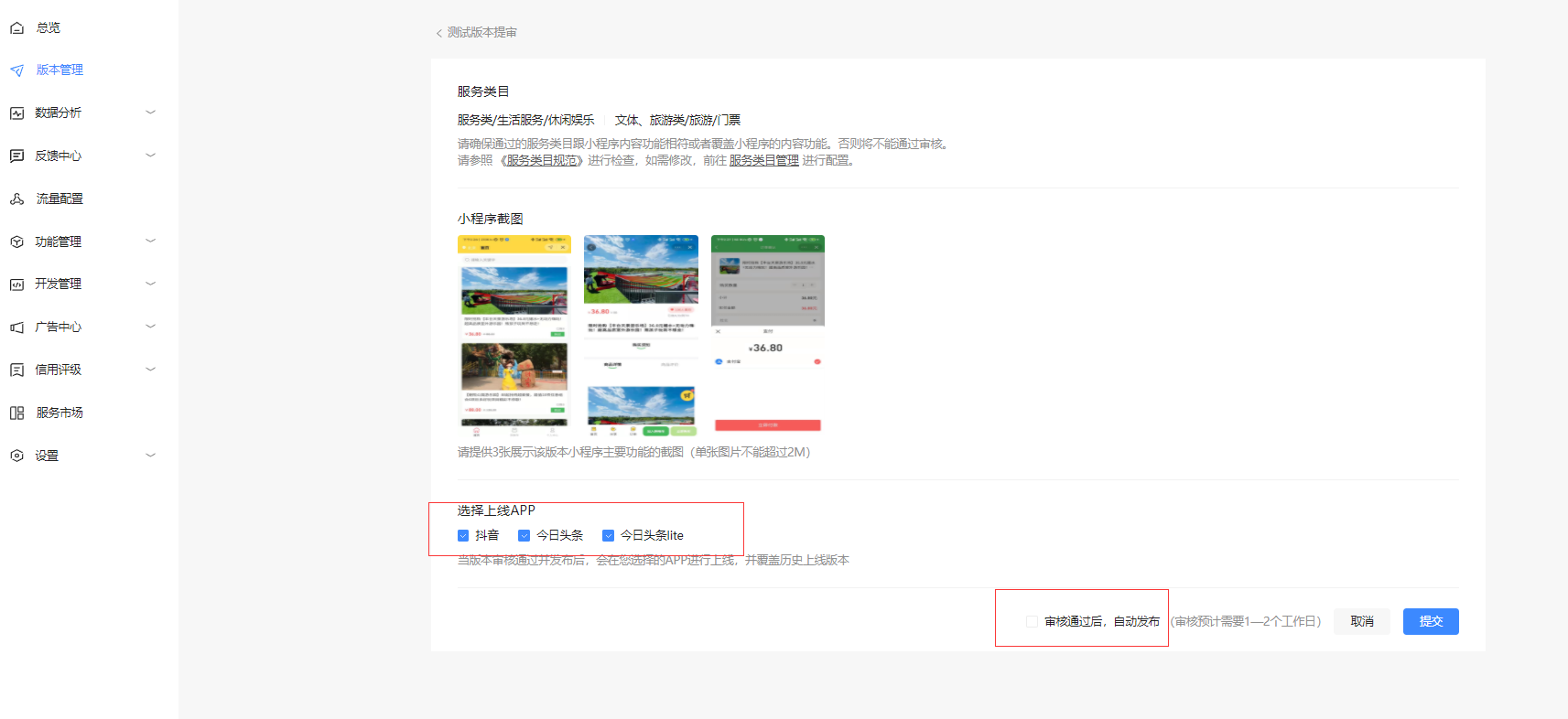 提交后会显示在审核版本,版本审核过后就会自动上线,上线后就可以在抖音上搜到自己的小程序了,刚刚审核完的是会有延迟的,过段时间才可以搜到小程序。