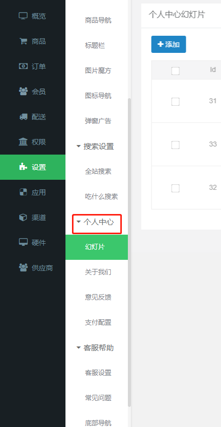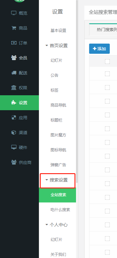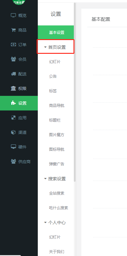 设置主要分四类:首页设置 搜索设置 个人中心 客服帮助