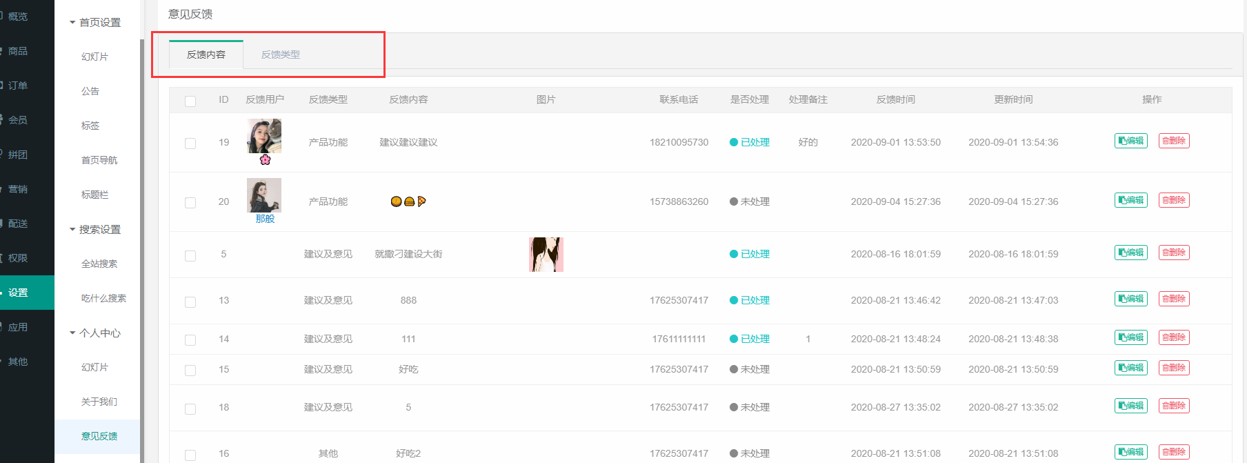 手机端位置在设置里面-意见与反馈