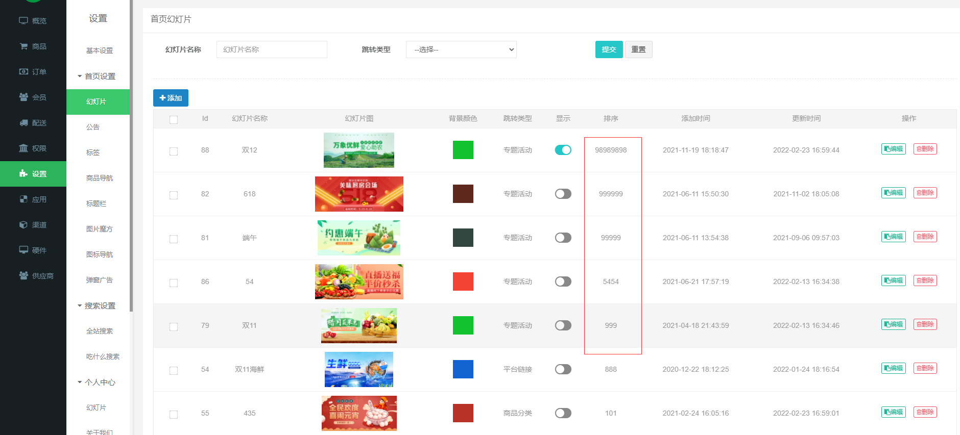 搜索设置数字越大排序越靠前 ...