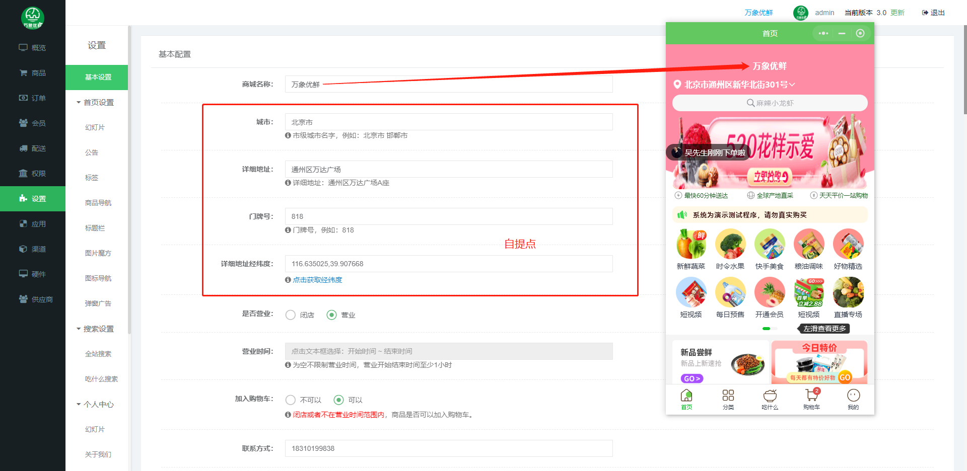 万象优鲜生鲜配送系统- 生鲜配送系统源码 生鲜批发百货配送系统商城相关演示地址及账号