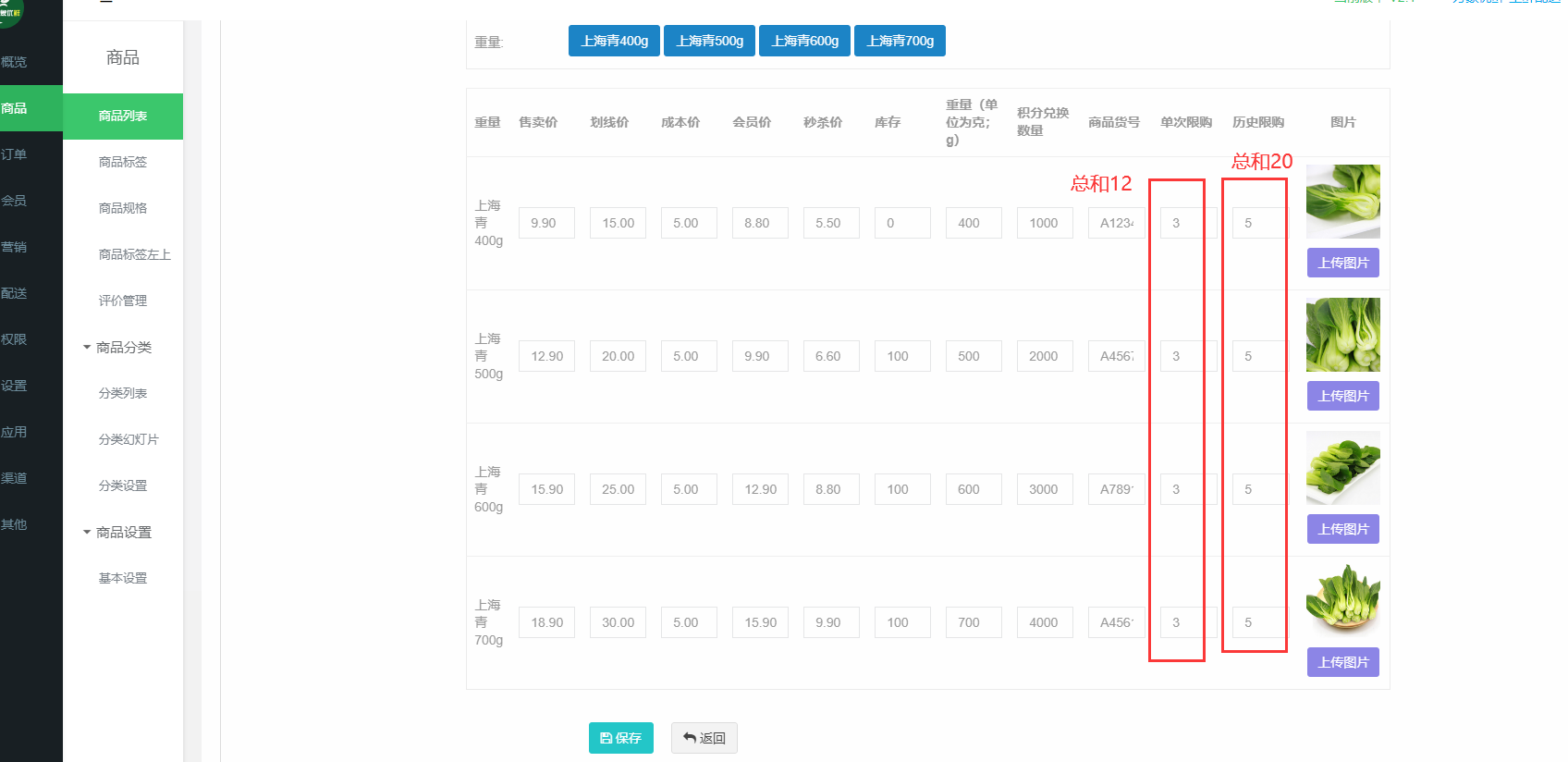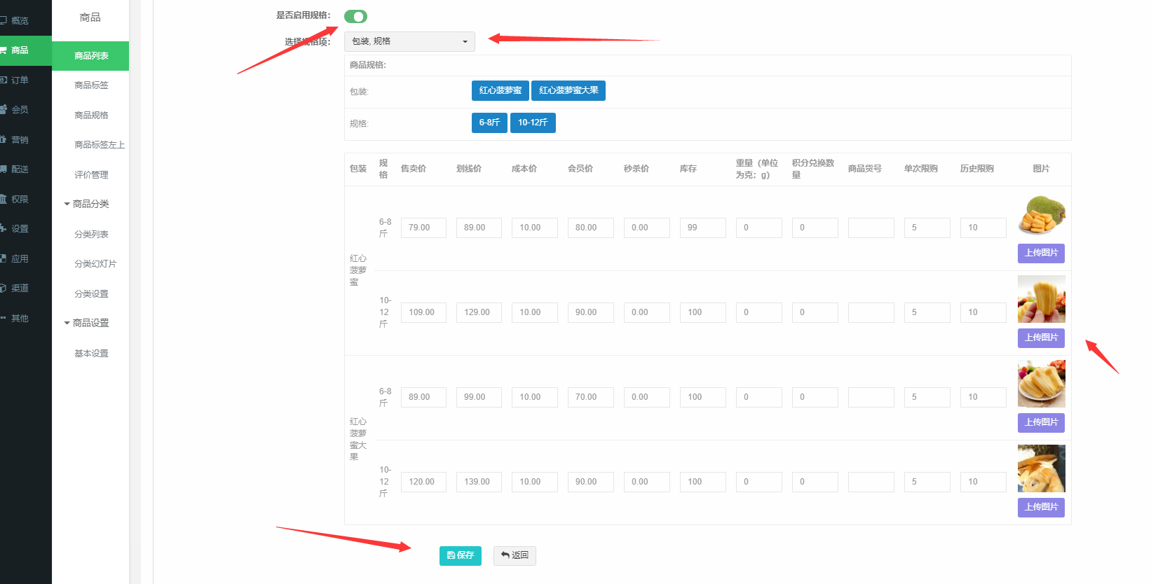 商品多规格设置